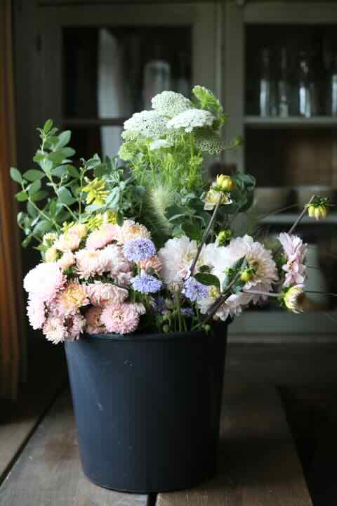 One bucket of seasonal loose flowers and foliage with approximately 60-70 stems. All buckets look different based on the season, color palette, and style but will have at least one bunch of all design ingredients (focal flowers, foliage, spike, disc, and air). Images are to give you an idea of what they look like but every year is different. Color palette's are for inspiration but if you have a specific color palette in mind please specify that in your order notes.
