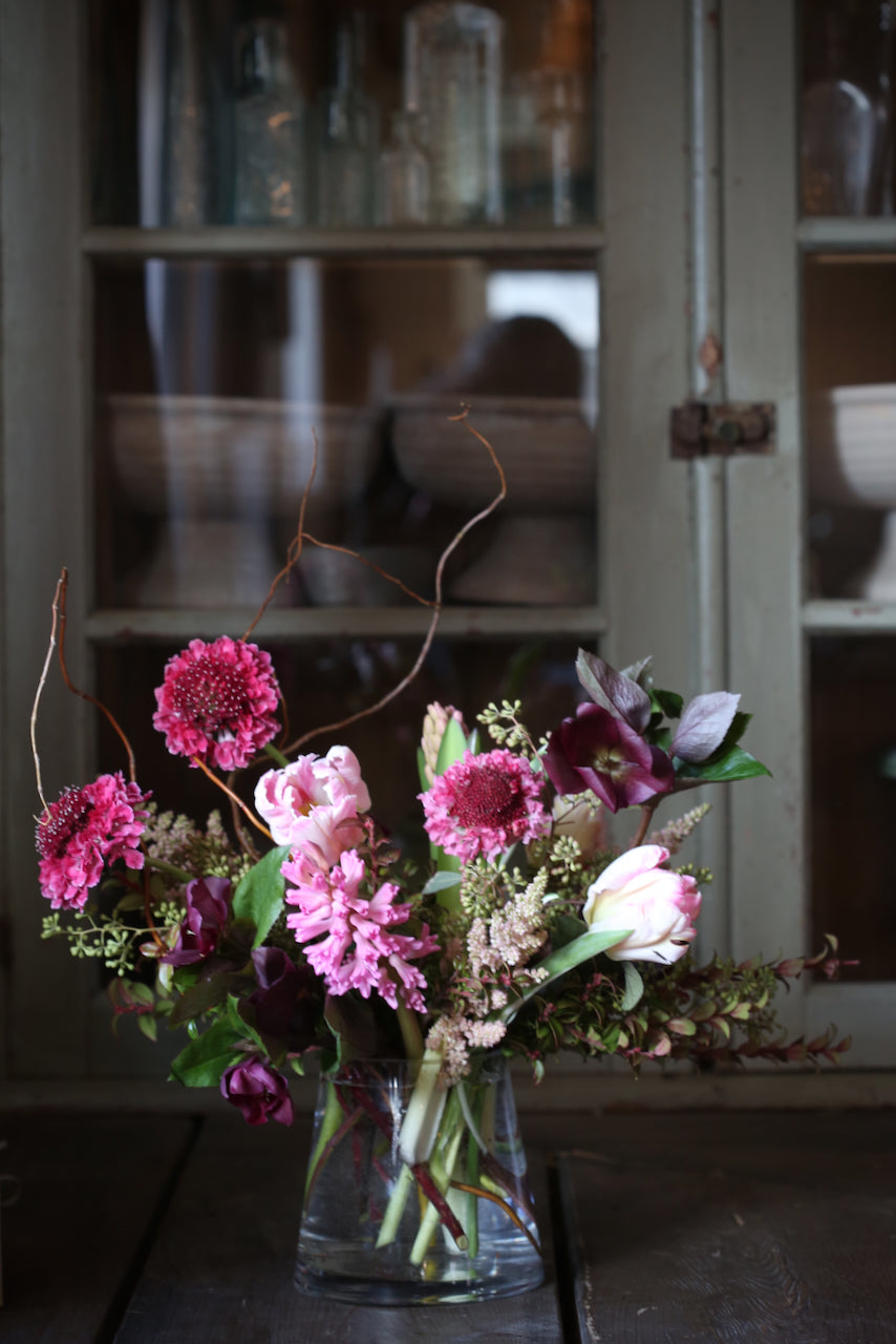 Our Seasonal Valentine's Day Arrangement highlight winter bulb favorites. Flowers include but are not limited to double tulips, hellebore, flowering branches, and more.
